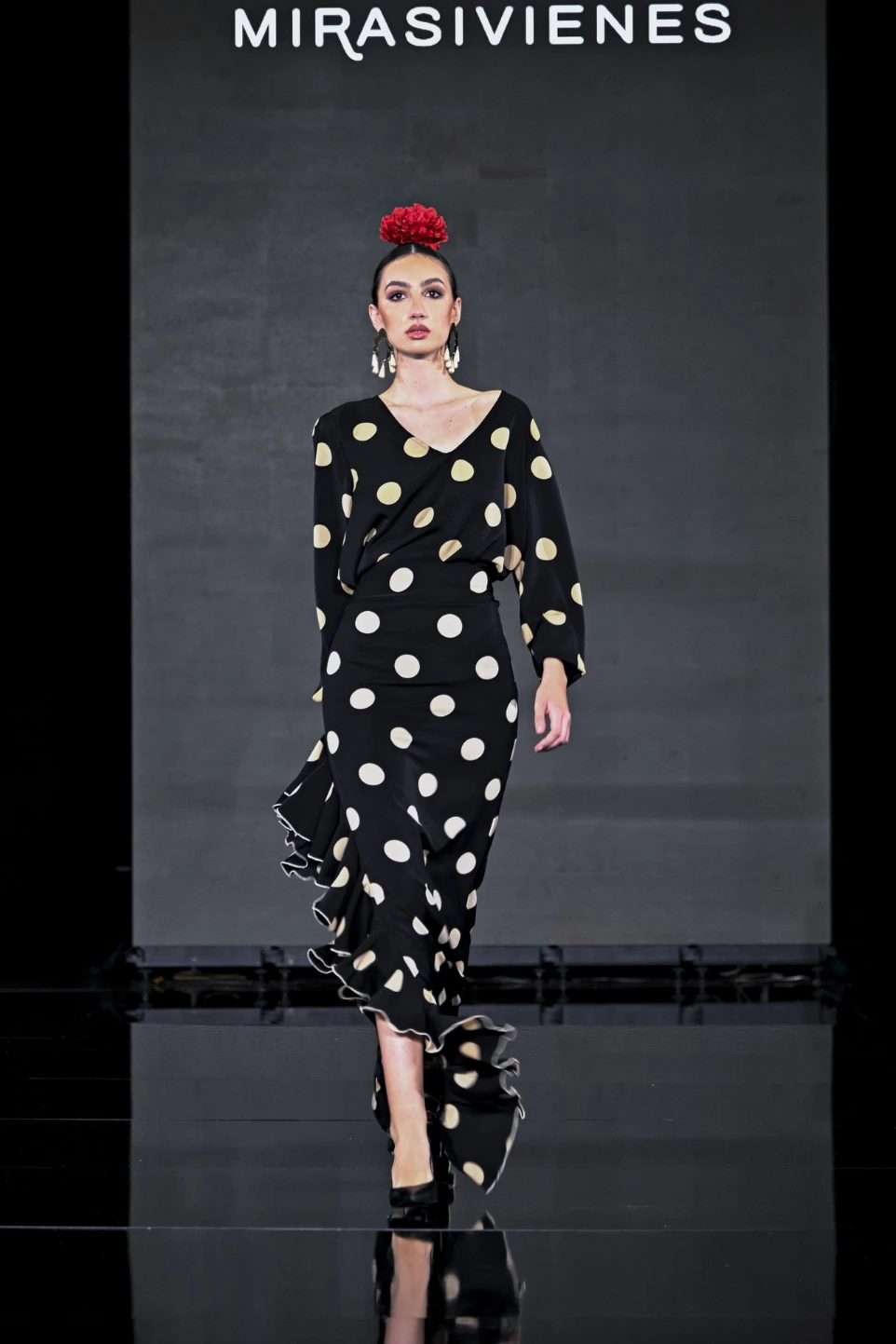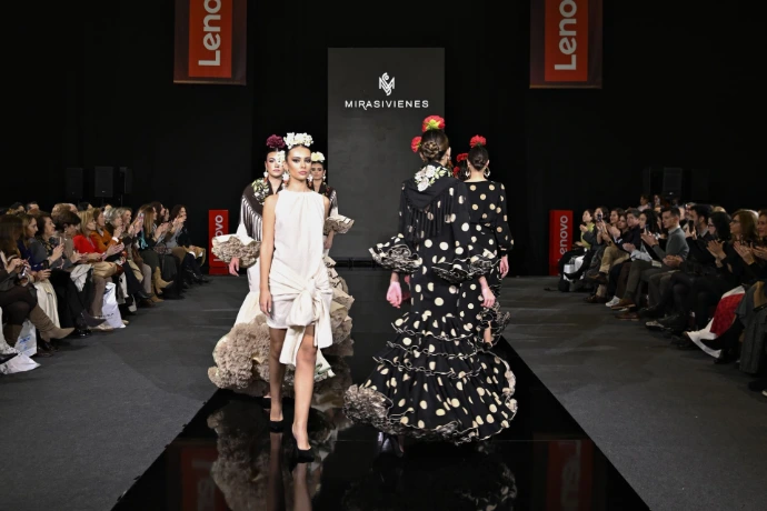 MIRASIVIENES presentó en 2025 en el ll Desfile Córdoba Moda con Alma una cuidada selección de vestidos de flamenca y romería, junto a propuestas para eventos en los que emplea elementos característicos de nuestra tradición y cultura como los lunares, los volantes y los volúmenes. Combinados en parejas, empleando el mismo tejido, MIRASIVIENES ofreció en el desfile este juego de propuestas en el que dialogan el traje tradicional de flamenca con su versión para eventos especiales.