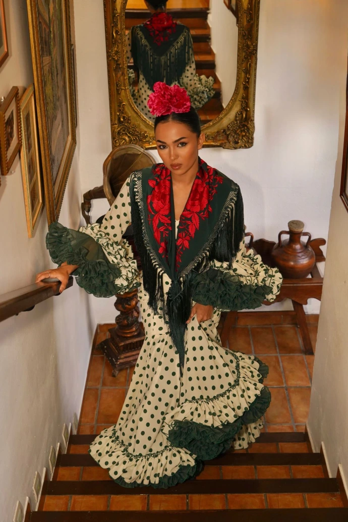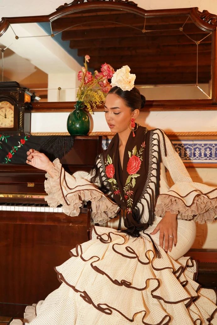 Nuestra colección fusiona tradición y modernidad, combinando modelos de estilo canastero, con volantes y faldas de capa en tejidos frescos como el lino, con propuestas más sofisticadas e innovadoras elaboradas en gasa y crepé, que destacan por su fluidez y cortes contemporáneos para aportar un aire renovado al patronaje flamenco.
